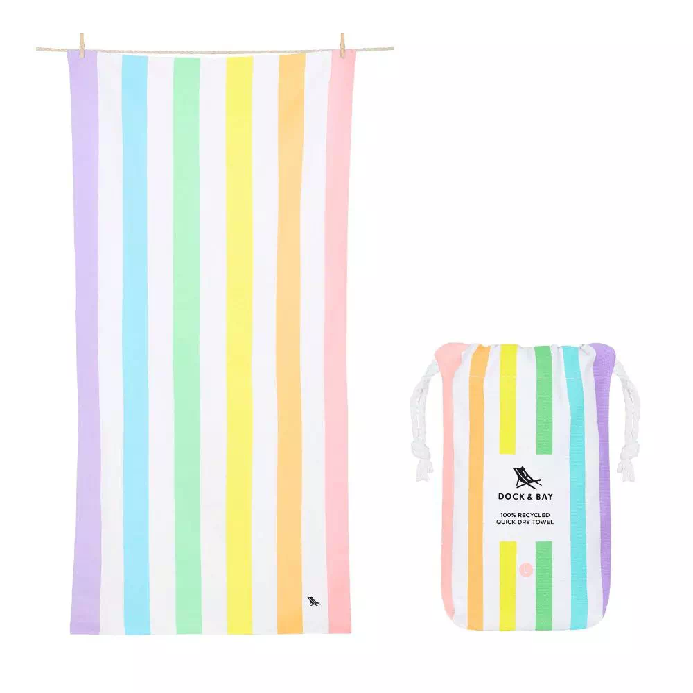 Si asciugano 3 volte più velocemente del cotone – Sempre fresco – Niente più odori di umidità – Realizzato con materiali plastici riciclati al 100% – Leggero e compatto – Respinge la sabbia – Tessuto unico senza nodi, così la sabbia si scuote via – Custodia gratuita: trasporta il tuo asciugamano nella sua piccola – Certified B Corp: significa che sono migliori! – Realizzato in 83% poliestere, 17% poliammide – Le sue dimensioni sono 200x90cm
