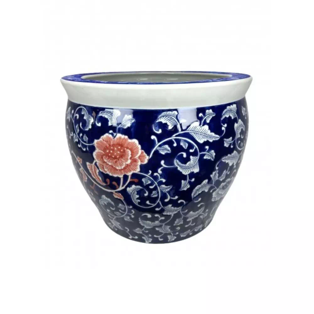 Il cachepot della collezione Ming Ming, si distingue per il contrasto dei colori il bianco e il blu cobalto. Decorato interamente a mano. Ha un’altezza di 41cm ed un diametro di 33cm