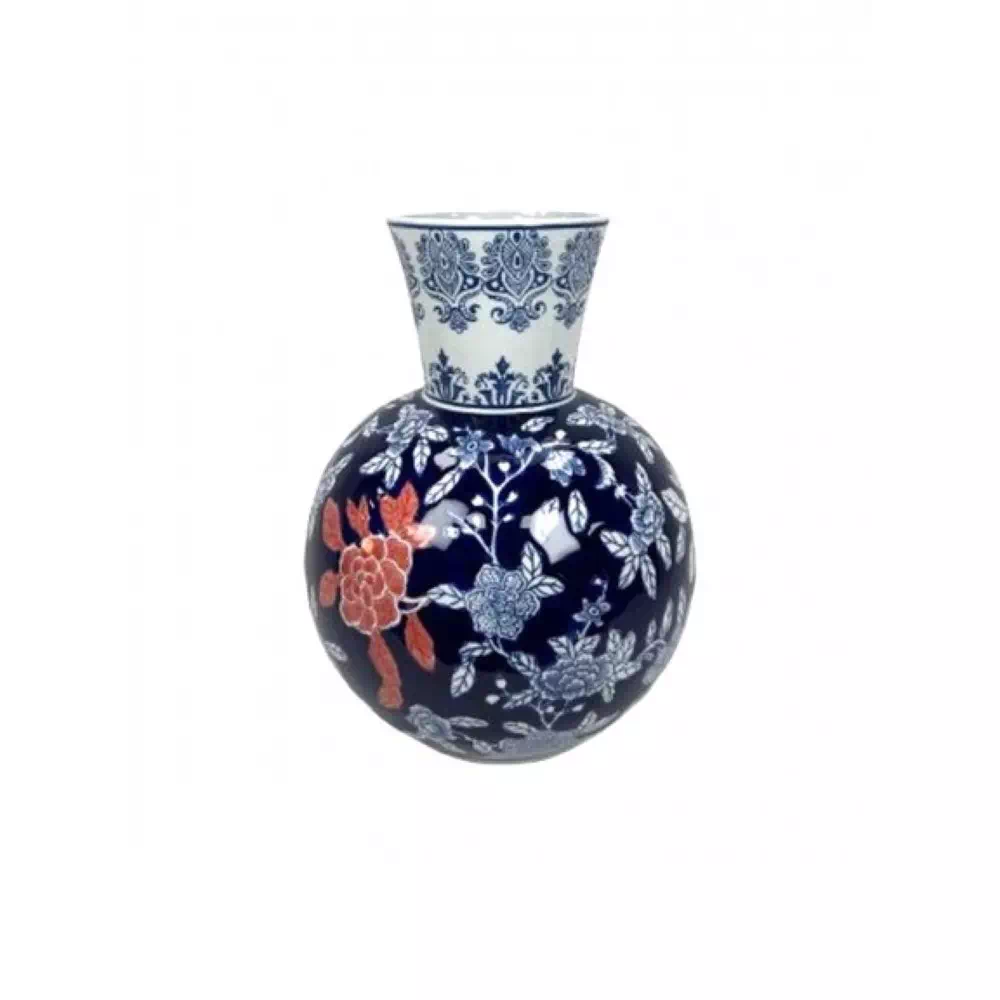 Il vaso della collezione Ming Ming, si distingue per il contrasto dei colori il bianco e il blu cobalto. Decorato interamente a mano. Ha un’altezza di 31 cm ed un diametro di 23cm