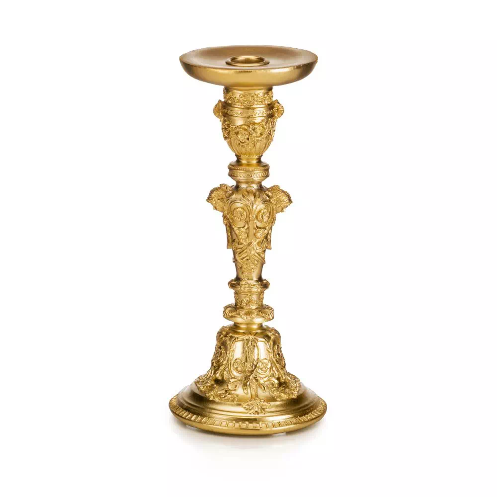 Il portacandela è prodotto in resina, di colore oro, è alto cm 25. E’ un bellissimo oggetto d’arredamento che si abbina con tutti gli stili. E’ completo di scatola originale.
