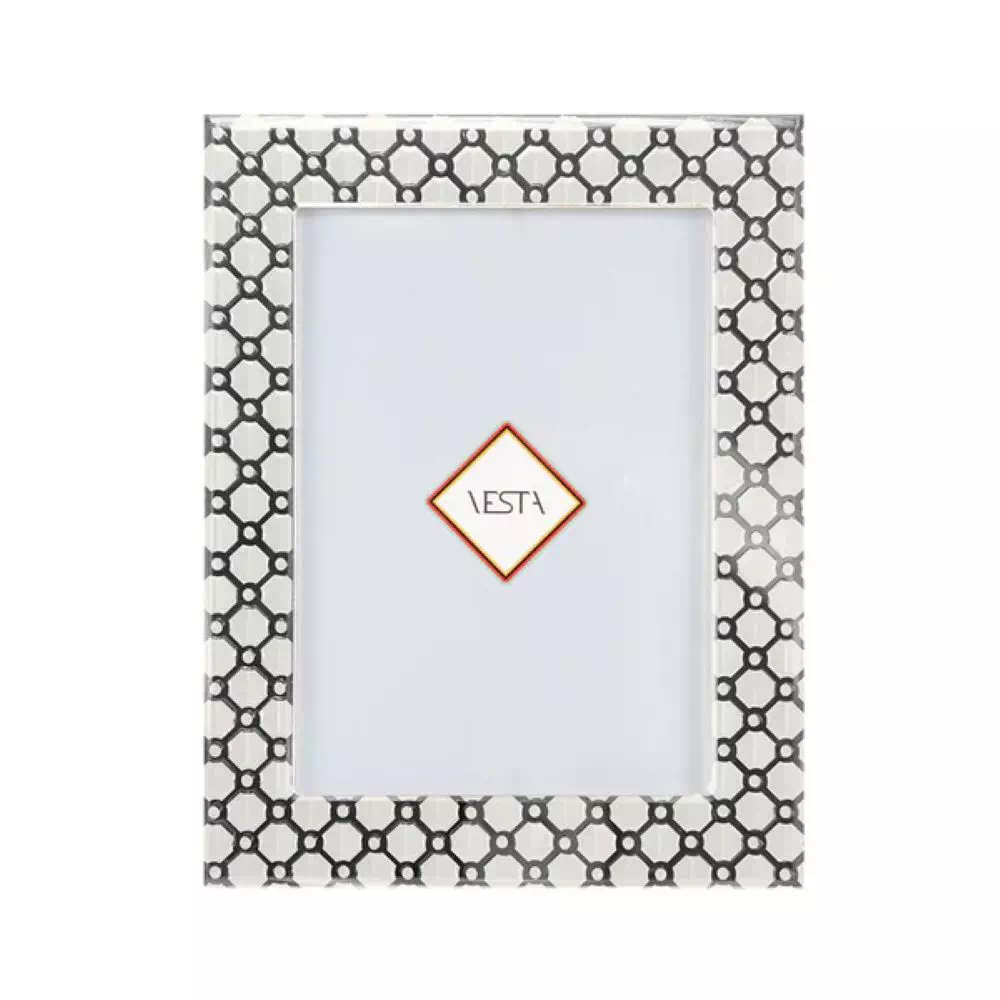 La cornice Easy Chic si distingue per un design raffinato, valorizzato da un motivo a intreccio stampato sul cristallo acrilico specchiato, che arricchisce la superficie con riflessi luminosi e dettagli decorativi discreti ma preziosi. Un equilibrio armonioso tra tradizione e modernità, capace di adattarsi a contesti sia classici che attuali. Versatile e funzionale, questo portafoto può essere posizionato sia in verticale che in orizzontale, offrendo massima libertà nella composizione degli spazi e nella valorizzazione delle immagini